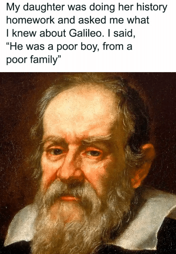 Look, we’re not saying that we would have wanted it any other way; however, the fact that this was this person’s first response is potentially worrying. Considering that Galileo was a seriously impressive astronomer, physicist, and engineer, perhaps these things should be the first associations with his name.
