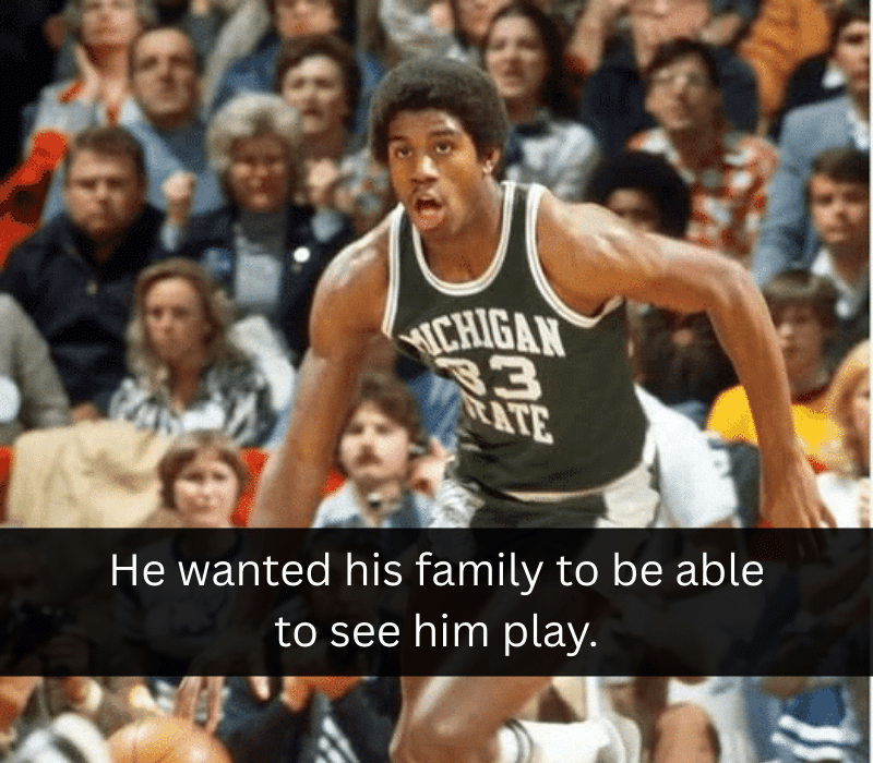 The whole country wanted him, but Earvin stayed home. He chose Michigan State not for the spotlight or a shoe deal, but for the comfort of being close to family. His parents could attend games, his friends could still call, and Lansing would never feel too far.